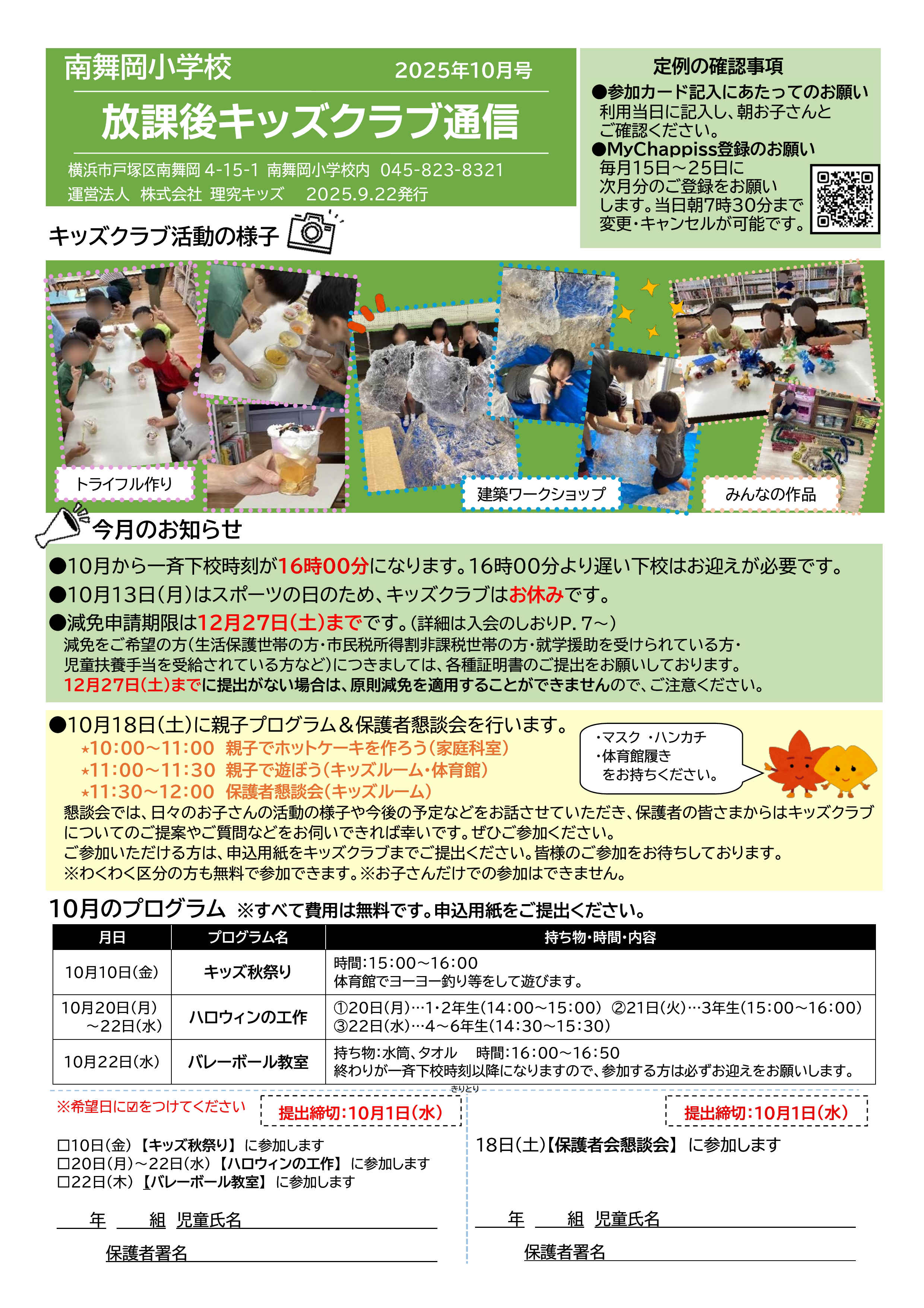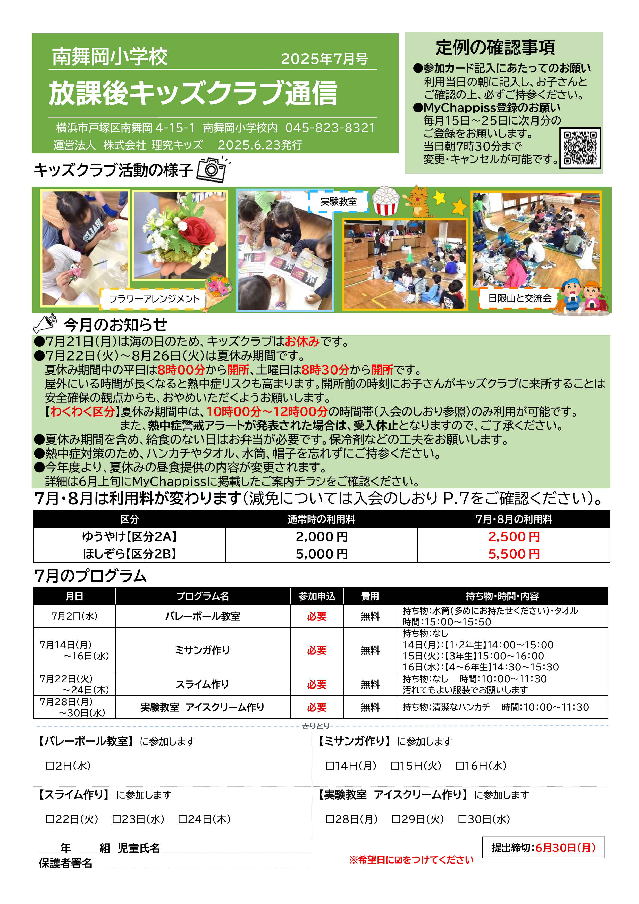 - 参加カード(利用日に「帰宅時間」「お迎えの有無」「保護者印(署名も可)」の記入あり)