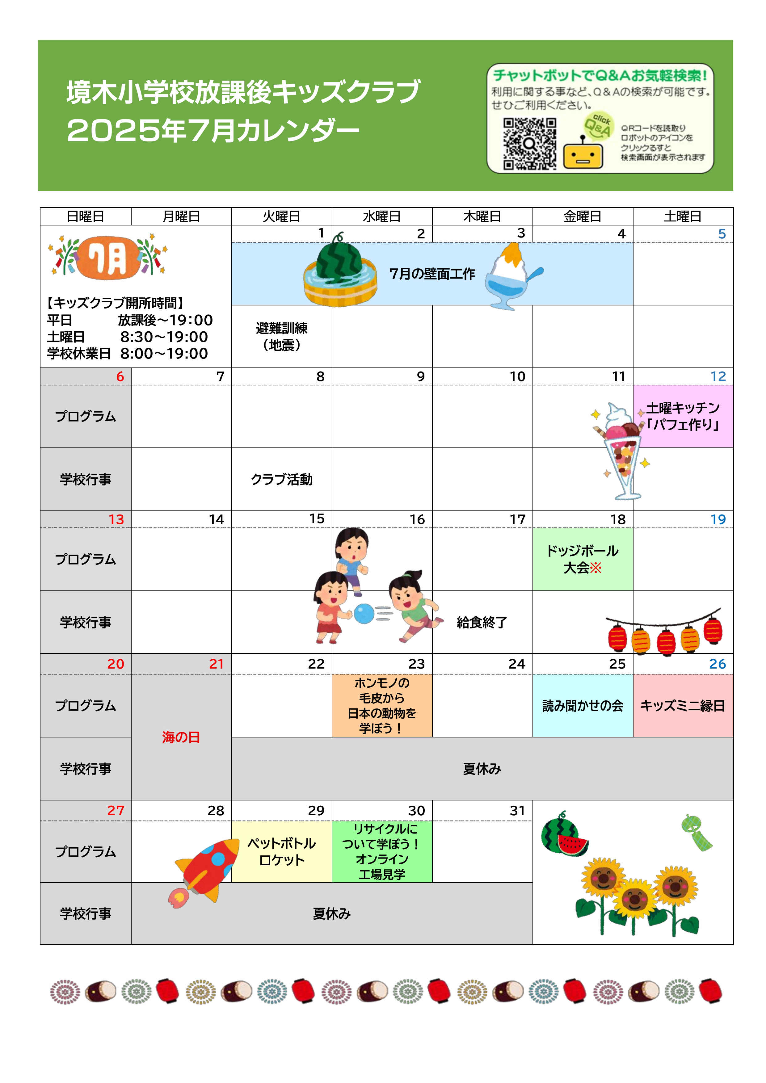 警報発表時等で通常と開所時間が異なる場合は、スタッフが放課後キッズクラブに到着してから利用可能になります。受け入れ可能になり次第、メールにてお知らせします。