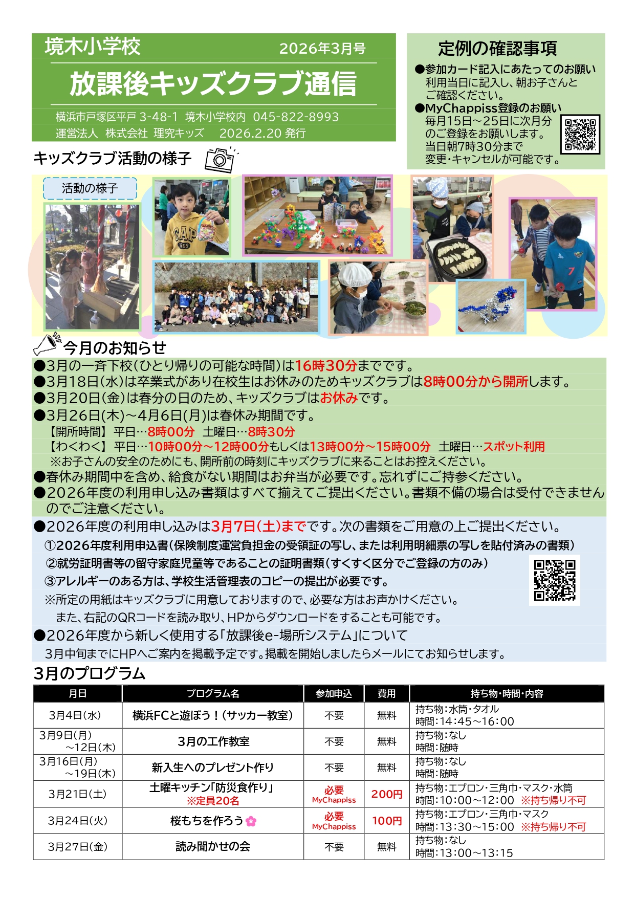 - キッズクラブ運営方針(PDFダウンロード) ※2026年度「運営方針」更新