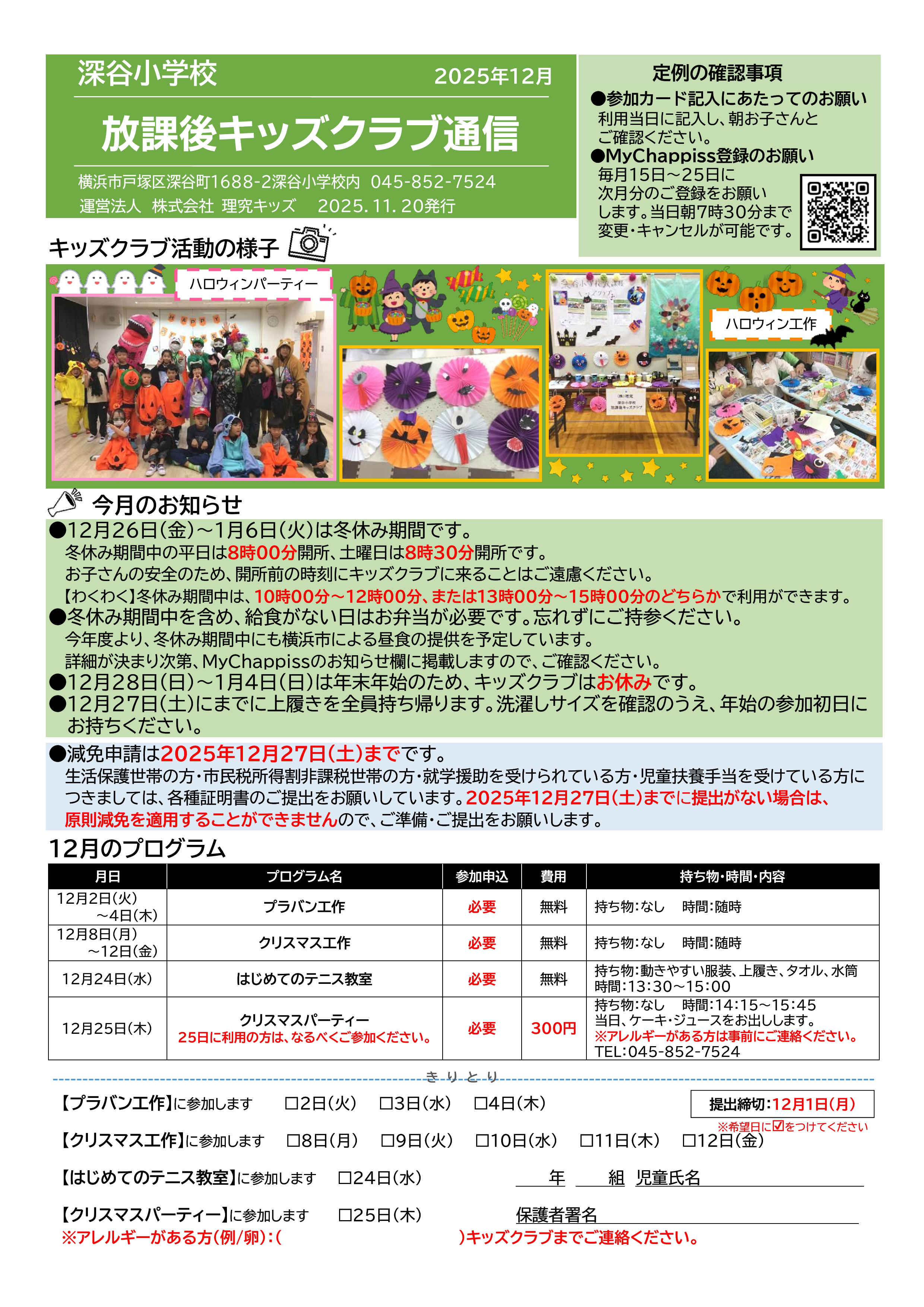 - 参加カード(利用日に「帰宅時間」「お迎えの有無」「保護者印(署名も可)」の記入あり)