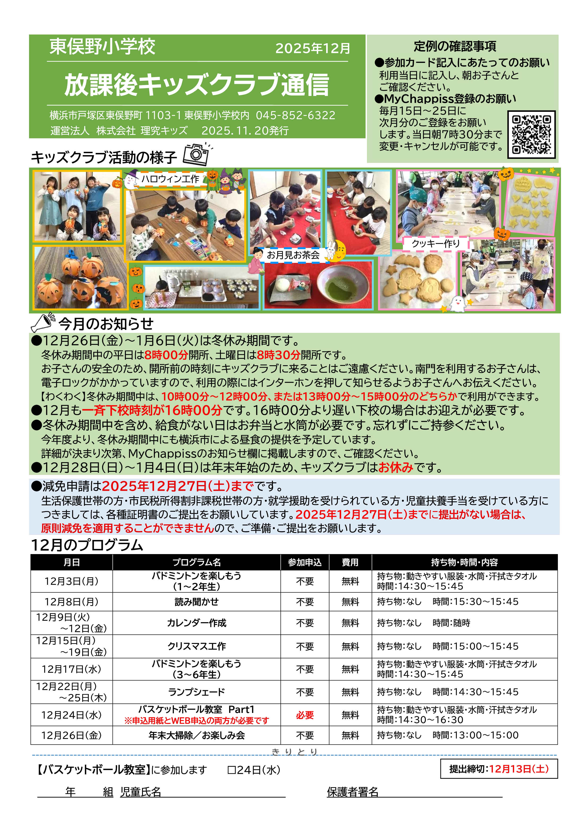今月の放課後キッズクラブ通信