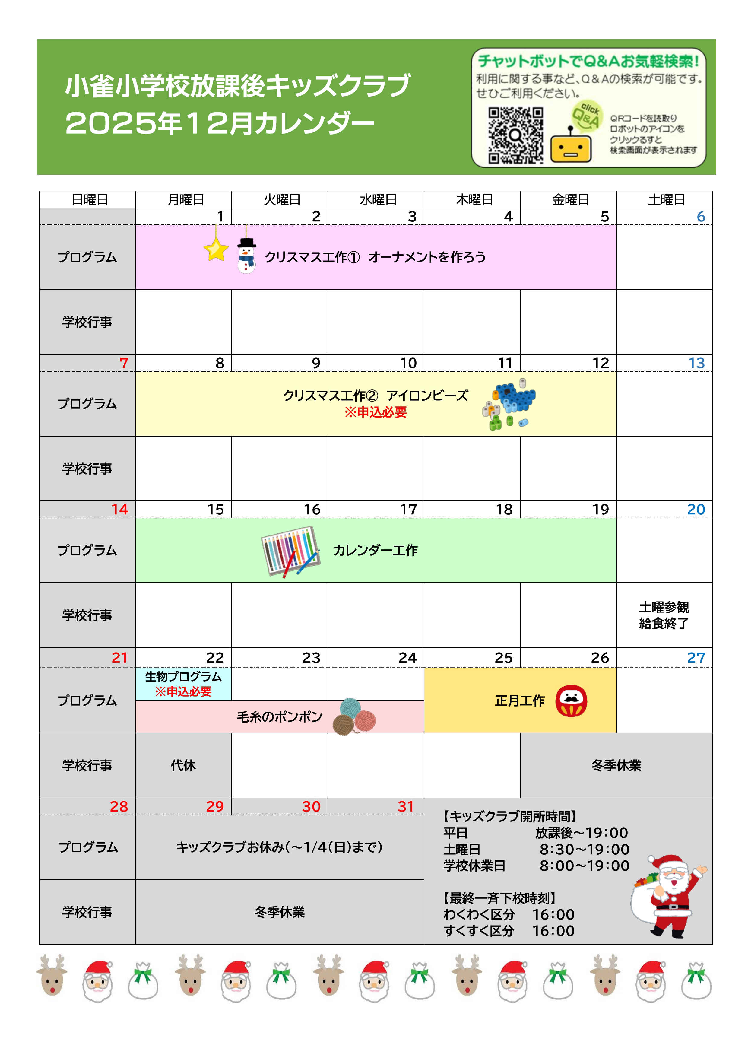 警報発表時等で通常と開所時間が異なる場合は、スタッフが放課後キッズクラブに到着してから利用可能になります。受け入れ可能になり次第、メールにてお知らせします。