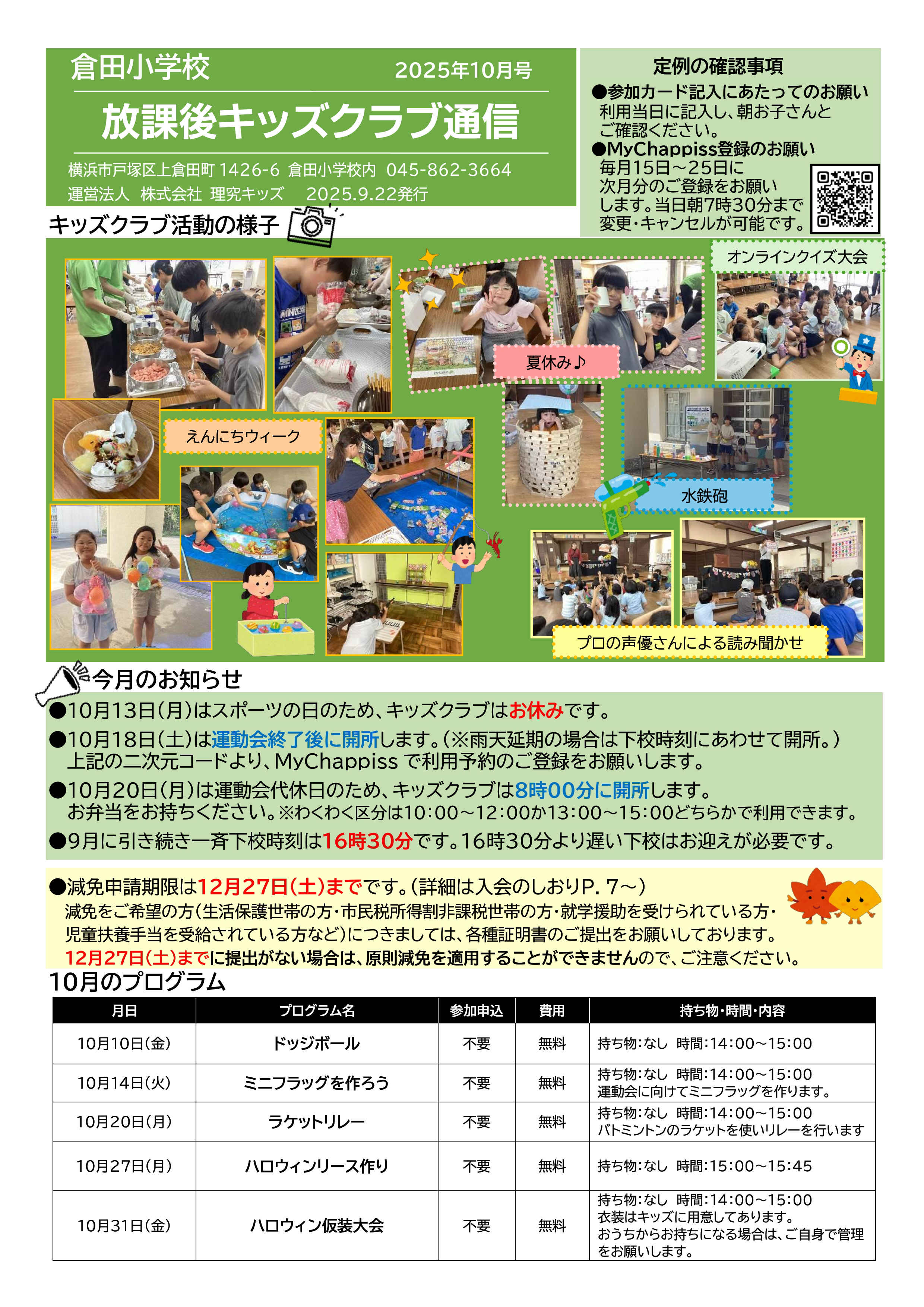 ※特別警報発表時は帰宅の安全が確保されるまで、お子さんは利用区分にかかわらず、放課後キッズクラブで留め置きとなります。