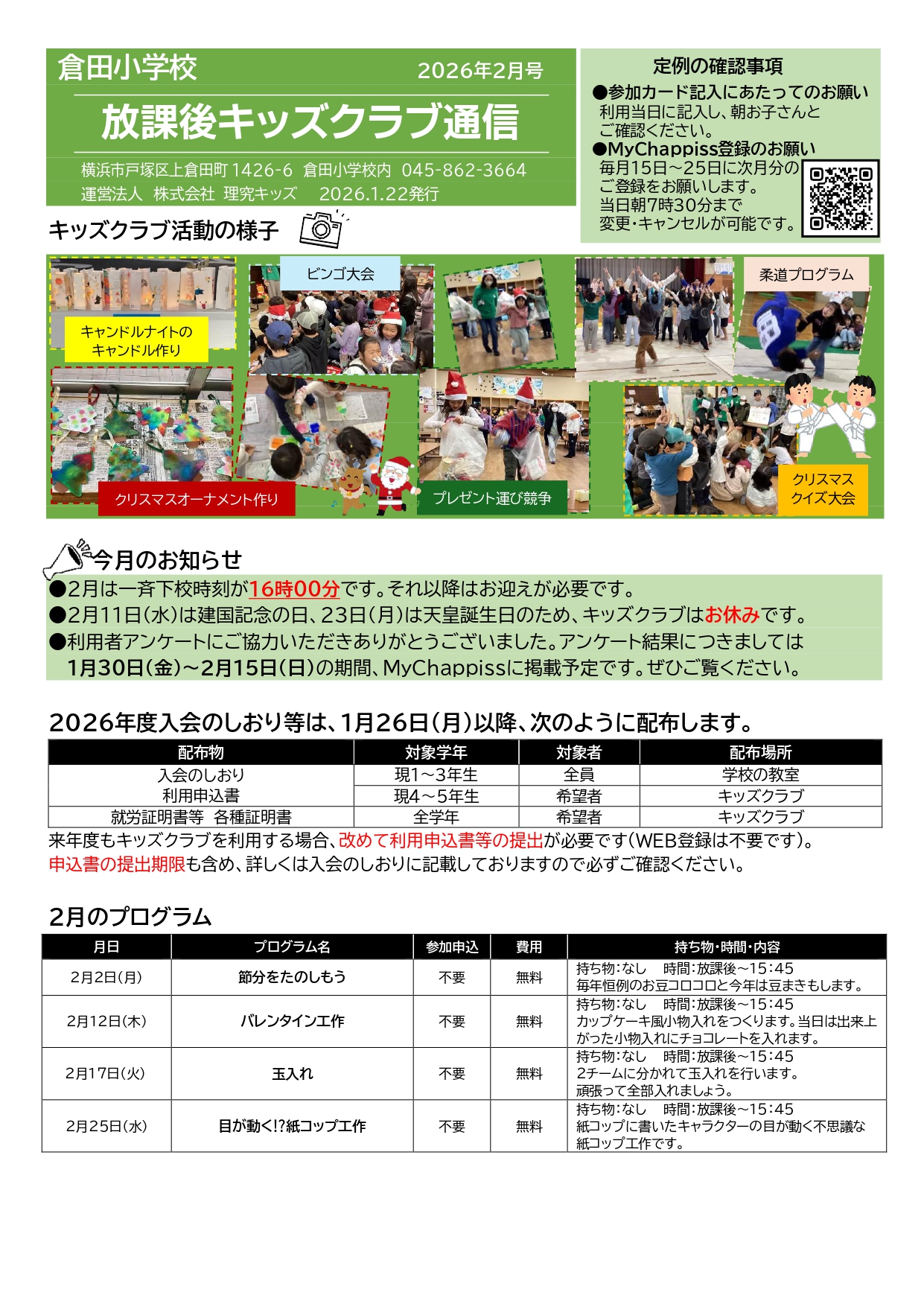 今月の放課後キッズクラブ通信