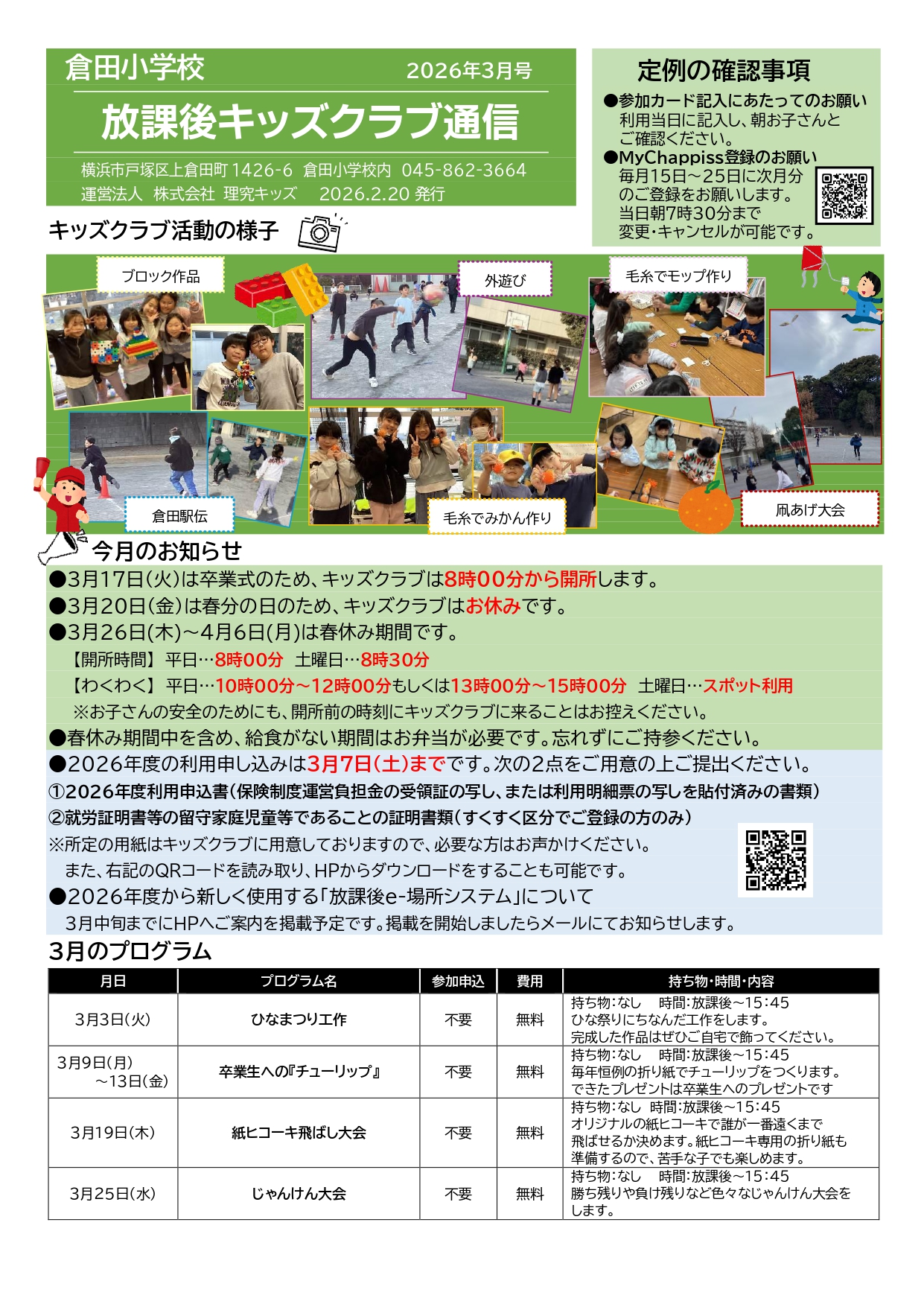 - キッズクラブ運営方針(PDFダウンロード) ※2026年度「運営方針」更新