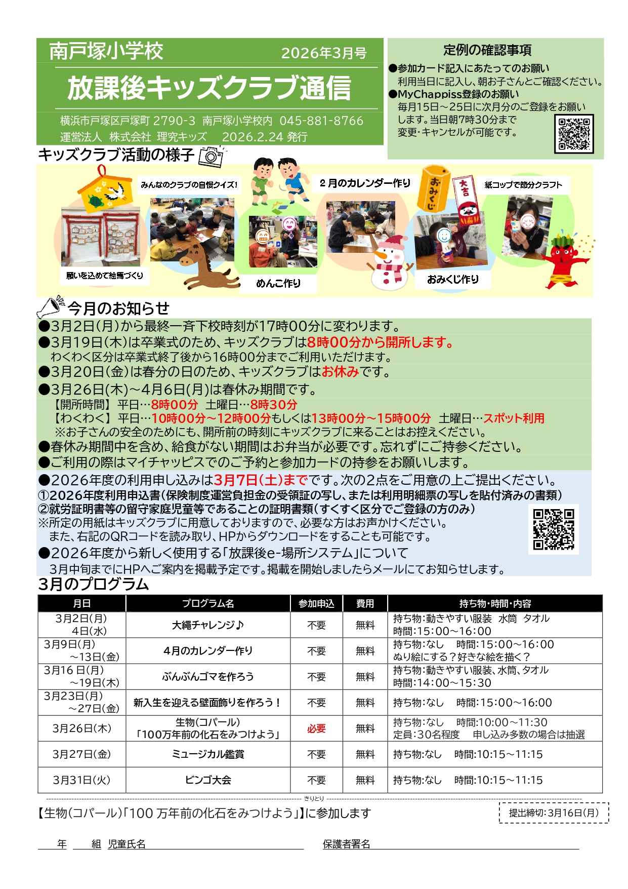 - キッズクラブ運営方針(PDFダウンロード) ※2026年度「運営方針」更新
