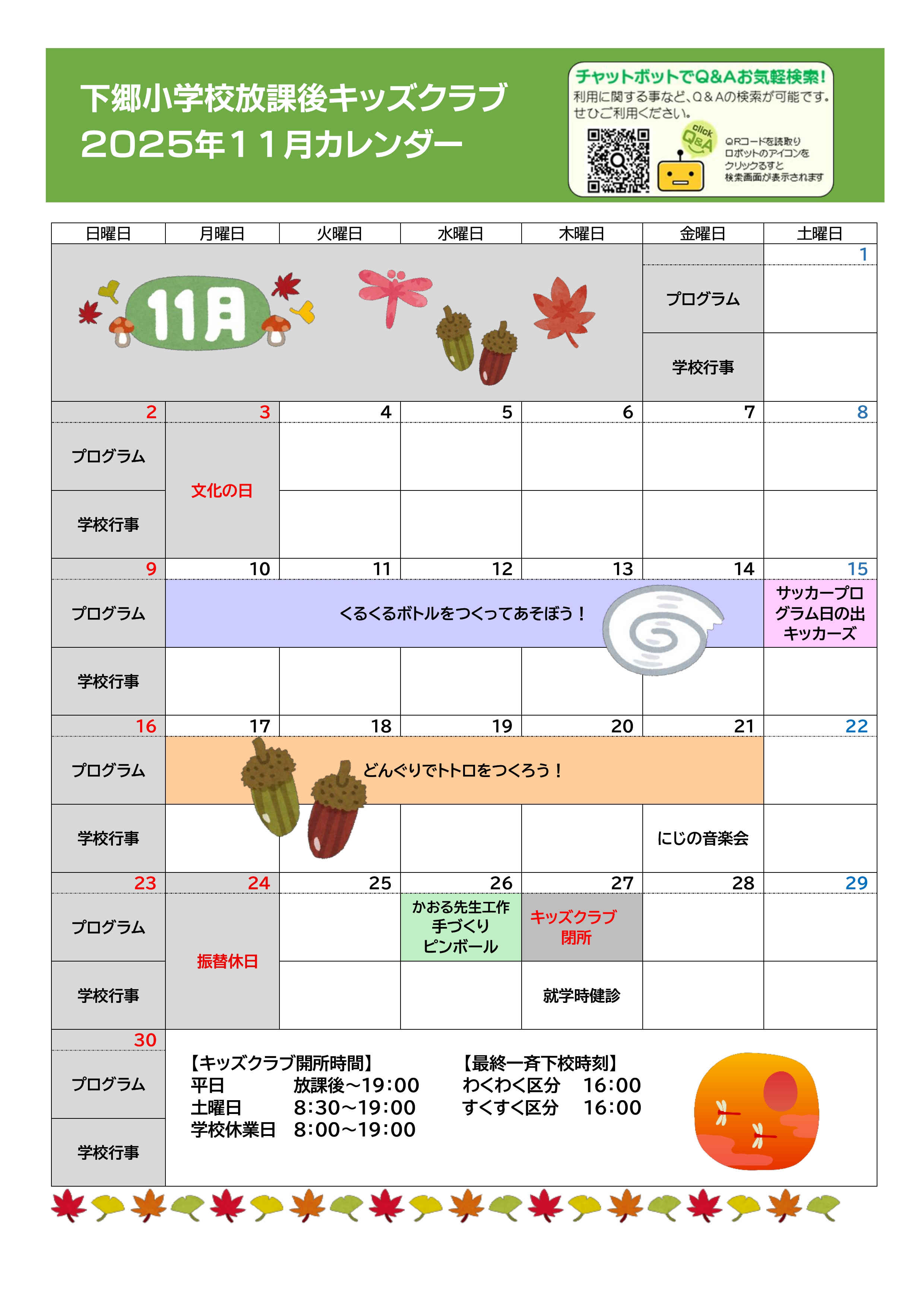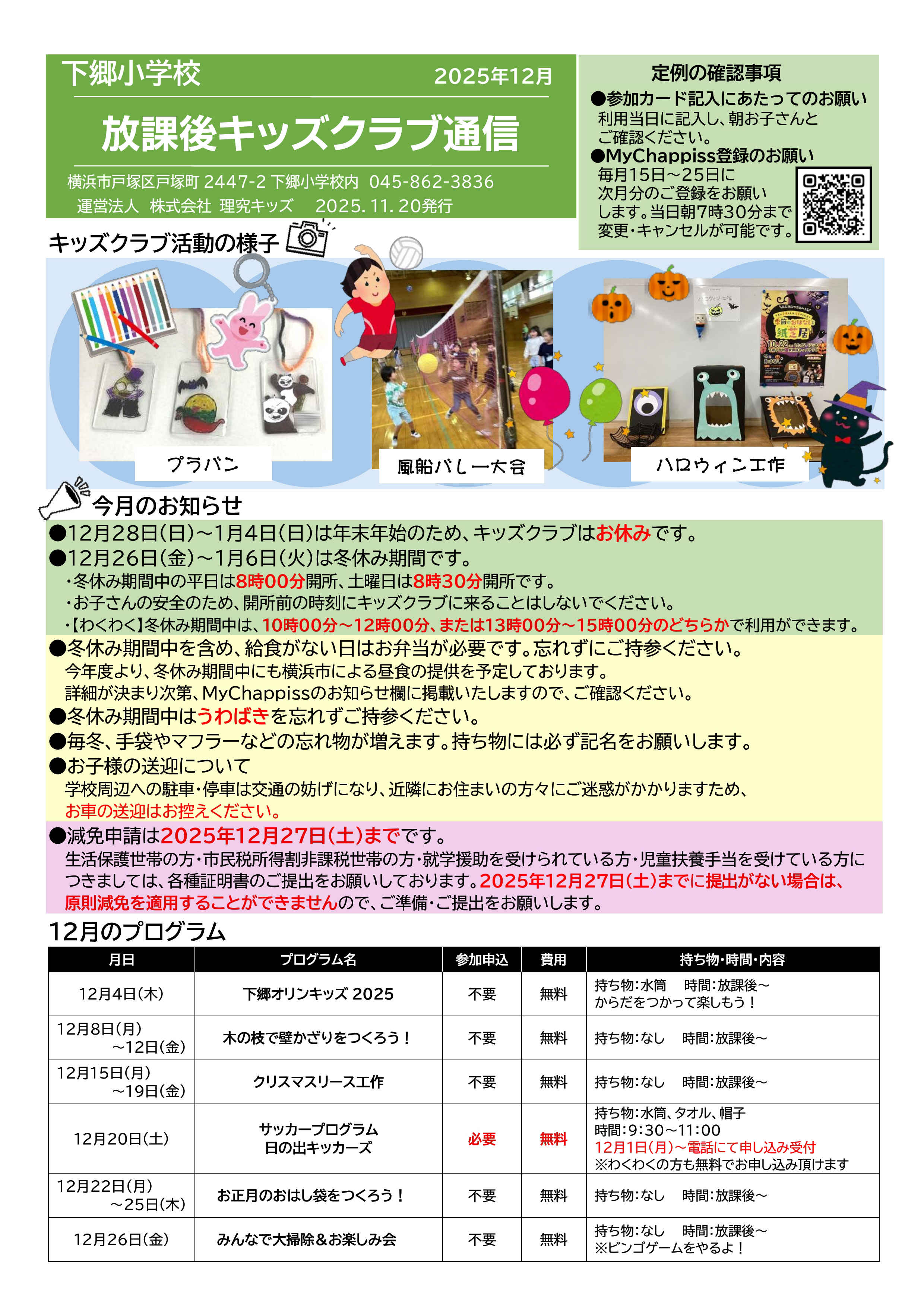 ※交通機関が不通となる場合もありますので、できるだけ早いお迎えをお願いします。※特別警報発表時は帰宅の安全が確保されるまで、お子さんは利用区分にかかわらず、放課後キッズクラブで留め置きとなります。