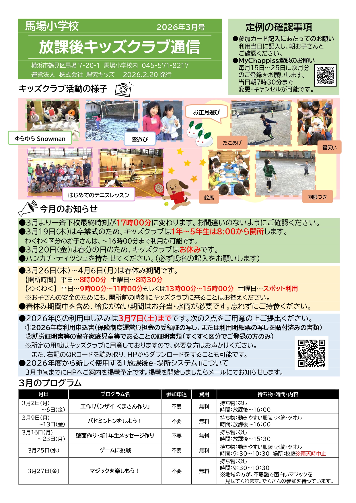 - キッズクラブ運営方針(PDFダウンロード) ※2026年度「運営方針」更新