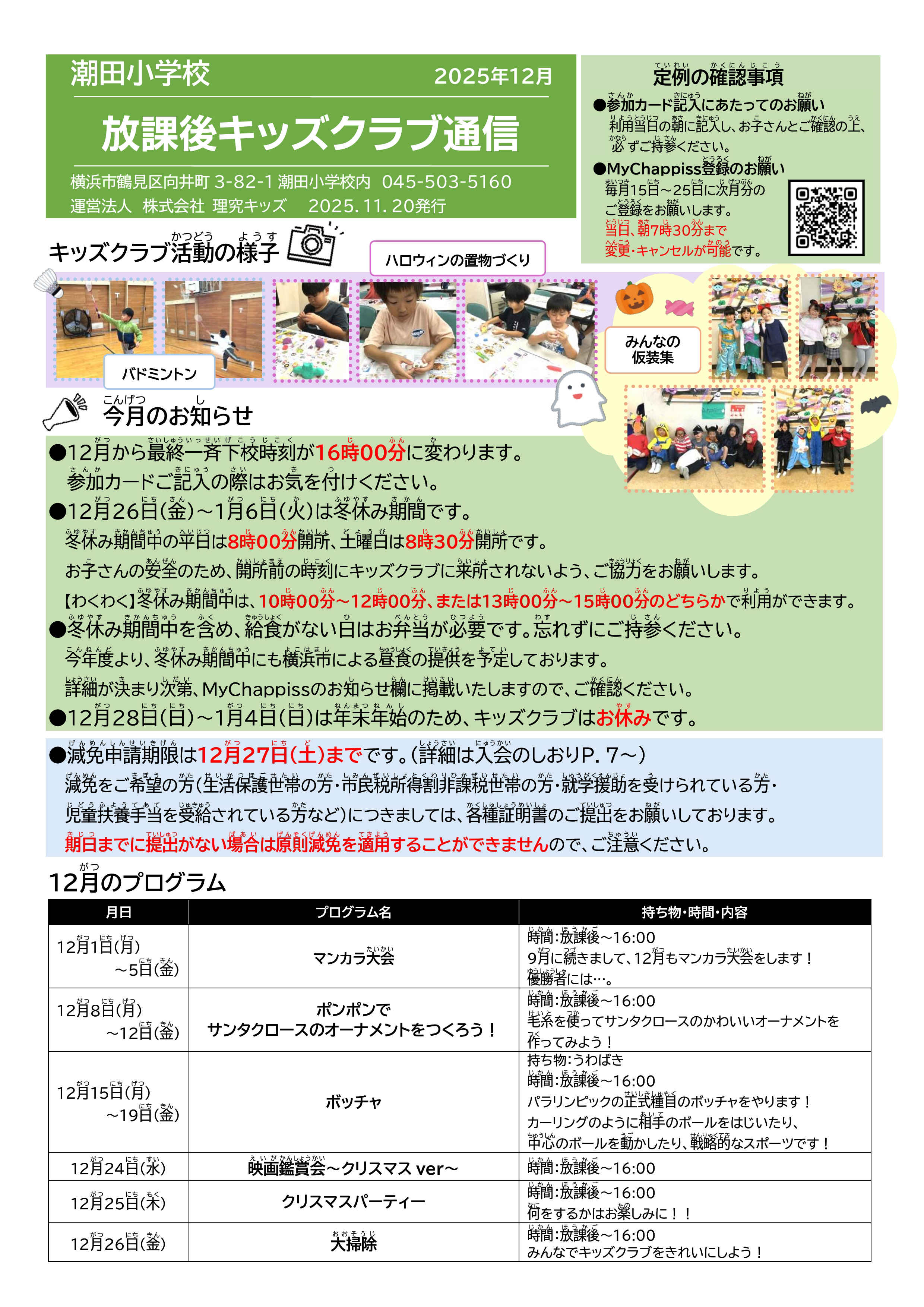 今月の放課後キッズクラブ通信