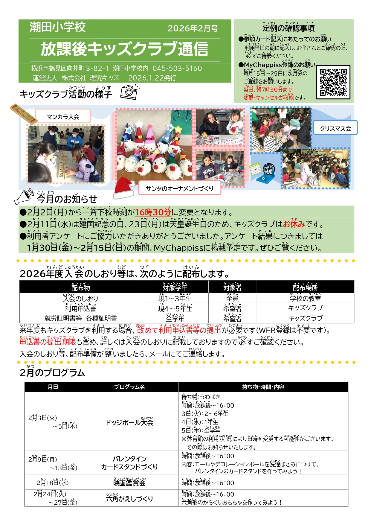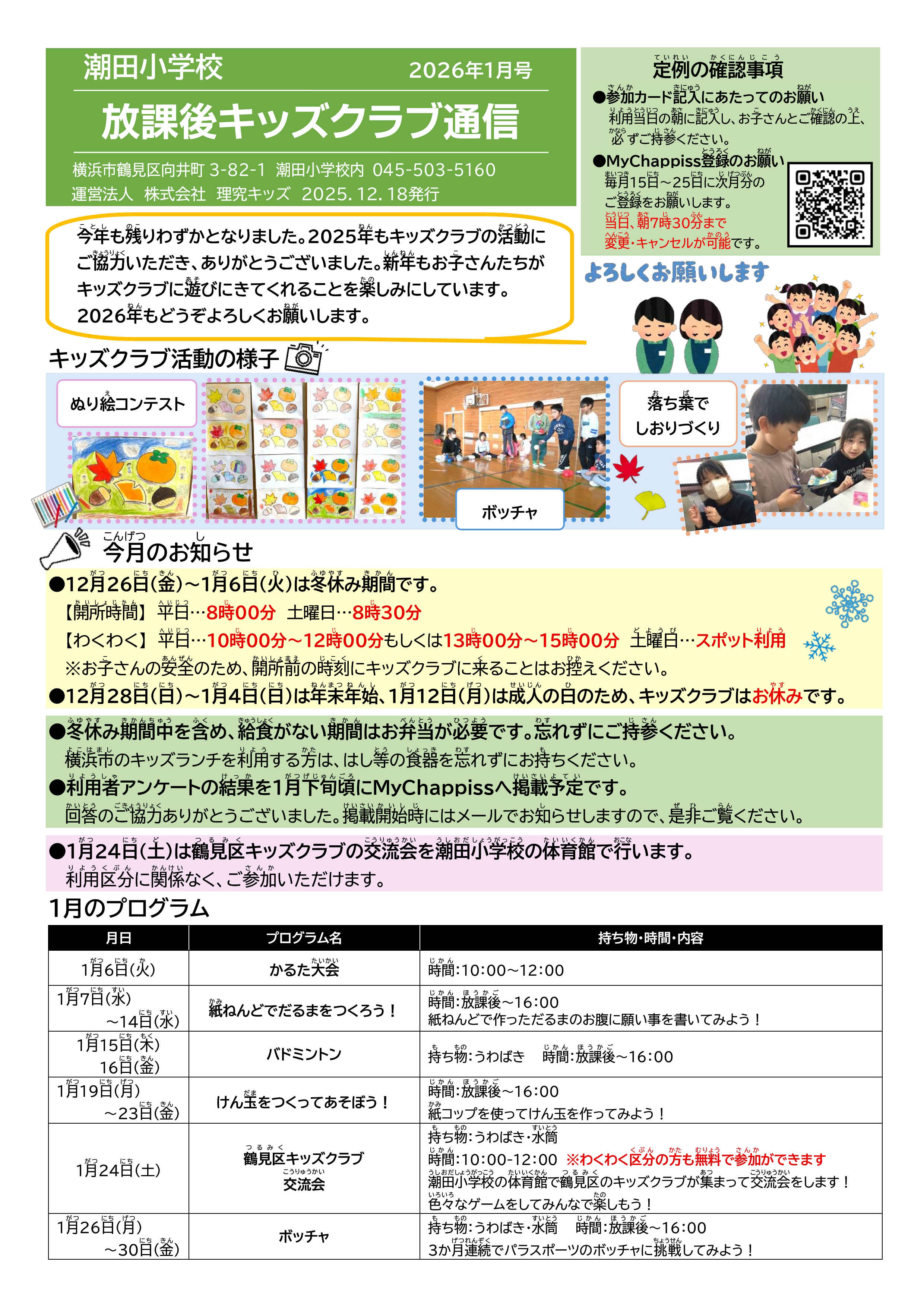 警報発表時等で通常と開所時間が異なる場合は、スタッフが放課後キッズクラブに到着してから利用可能になります。