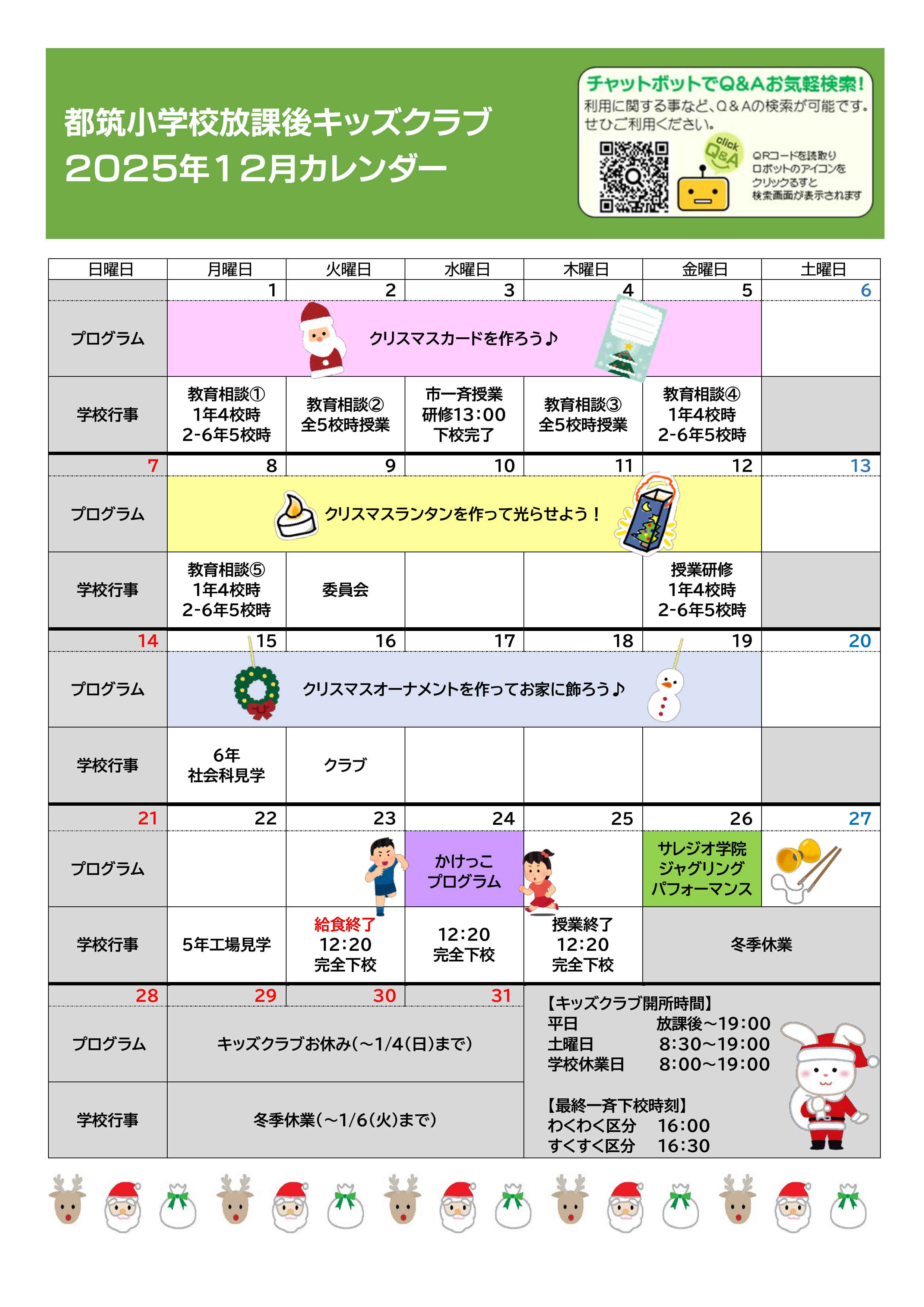 「暴風警報」・「大雪警報」・「暴風雪警報」・「降灰予報」発表中は、帰宅時刻に関わらず、利用しているすべてのお子さんの保護者か代理の方のお迎えが必要です。子どもたちはお迎えが来るまで放課後キッズクラブで待機します。