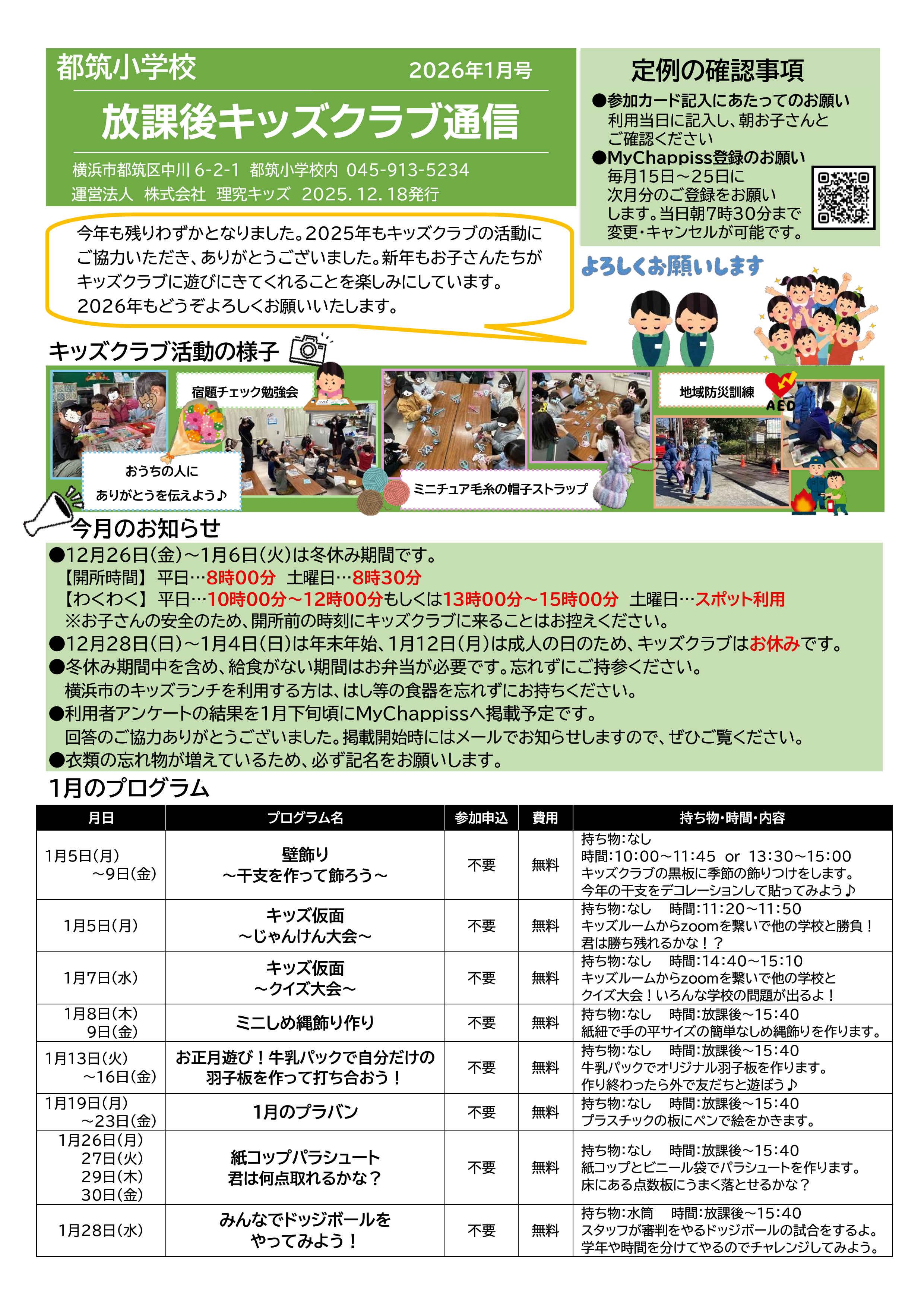 今月の放課後キッズクラブ通信